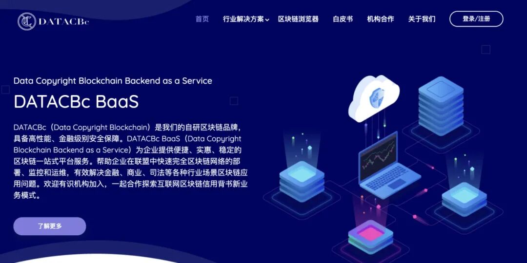 DATACBc BaaS全称为:Data Copyright Blockchain Backend as a Service(数据版权区块链后端服务),也可以简称为DCB区块链服务。基于比特币核心区块链算法的动态元数据合约打造而成,已进行国家区块链备案。