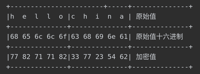 “hellochaia”这个字符串对于同一个密钥来说,经过两次迭代运算得到的密文值永远是不变的,攻击者截取到密文很容易发现加密采用的是ECB模式,从而可以观察到很多规律,比如密文中多次出现71,最终可能能成功破解出明文。