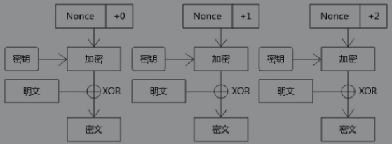 下图说明了如何在 CTR 块操作模式下使用块密码对明文的块进行逐个加密: