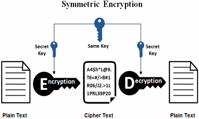 无论什么加密算法,密钥是非常重要的一环,加密和解密都需要用到,如果加密和解密的密钥相同,这种加密算法就属于对称加密算法。下图描述了对称加密算法的操作: