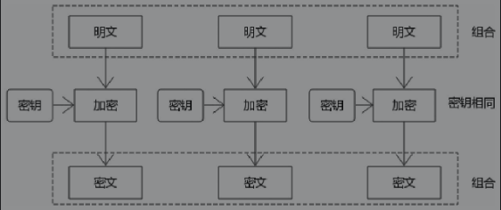 所谓块密码算法,就是在加密或这解密数据时,将数据分成固定长度的数据块(block),每次只处理一个数据块,依次对一个个的数据块加密或解密,最后完成对整个数据的加解密。