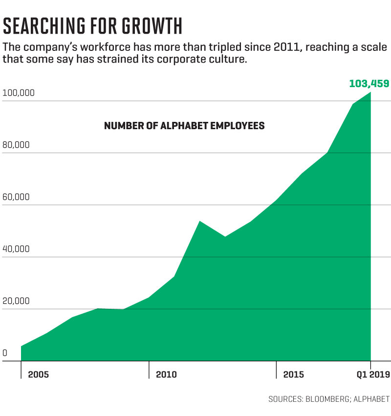 自2011年以来,谷歌员工人数增加了两倍,达到了足以“引发企业文化紧张”的规模