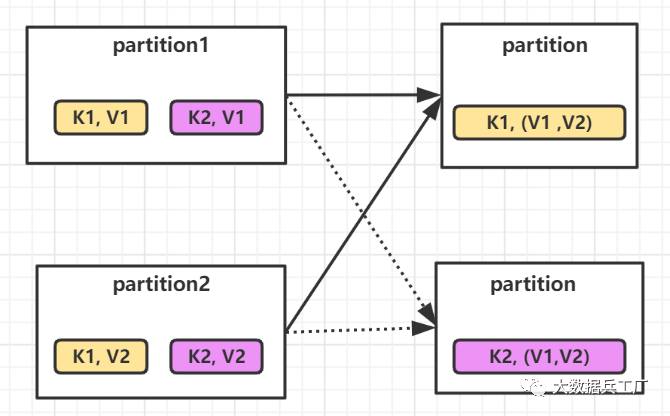 在flatmap()方法中指定CoFlatMapFunction,并分别实现flatmap1()和flatmap2()函数。