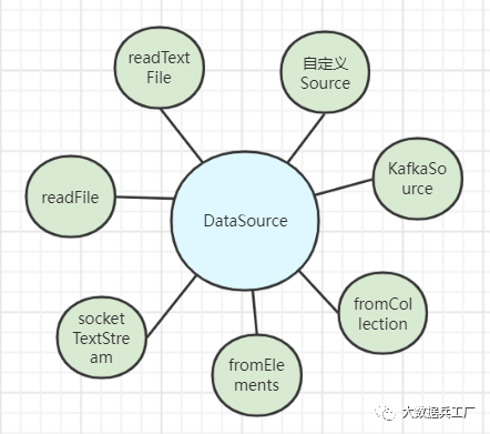 DataSource输入模块定义了DataStream API中的数据输入操作,Flink输入数据源分为内置数据源和第三方数据源两种类型。