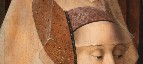 无疑,这副“谜一般的绘画”,历史上屡屡吸引着各类爱好者对之进行蓄力破解,当中,宗教范畴内的解读显得尤为突出,因此不乏过度的解码与阐释。但无论如何,对画面蛛丝马迹的深究,某程度,或许有助于揭示中世纪人的生活方式及其他。本来,反映世俗生活的绘画,即如画中的那面凸面镜,有着镜像历史的功能。再比如,若我们细心观察,会发现作者的签名被置于画面的底端,事实上,这也是金匠的主工作台连接临街商铺的窗棂框沿的底端,于框沿签名这一手法的运用,不免让人想起这一时期的北方文化传统——婚姻与门楣,即新婚夫妇习惯将他们姓名的首字母和结婚日期刻写在新家的门楣(或窗棂)之上。对框的特别标注,既可理解为对框内主体的强调,对半禁锢的意象隐喻(画面中仅描绘了部分窗棂),也极可能意味着面向框外世界有意发出向内投入的视觉邀请与感知集纳,由此,感知空间与世俗空间相偎交叠,各种可发散的解读,似乎正有意无意引领观者将思绪延续、延续、再延续,直至远方某些无尽分岔的小径......被誉为“细节狂魔”的克里斯蒂,因对细节的极致关照,推进了其作品不可被漠视的一种特质——“幻象”的滋长。