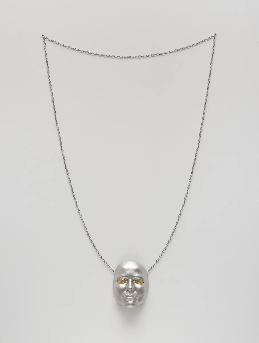 2022年6月,在纽约古根海姆美术馆的最新个展中,韦林终将长久佩戴的面具剥离——并以悬置于空间的缀链形式开启新的启示——被剥离的假面、假肢,成为散落在缀链上的一件件装饰,“面具”作为装饰,似乎正在回归其原有的性状。