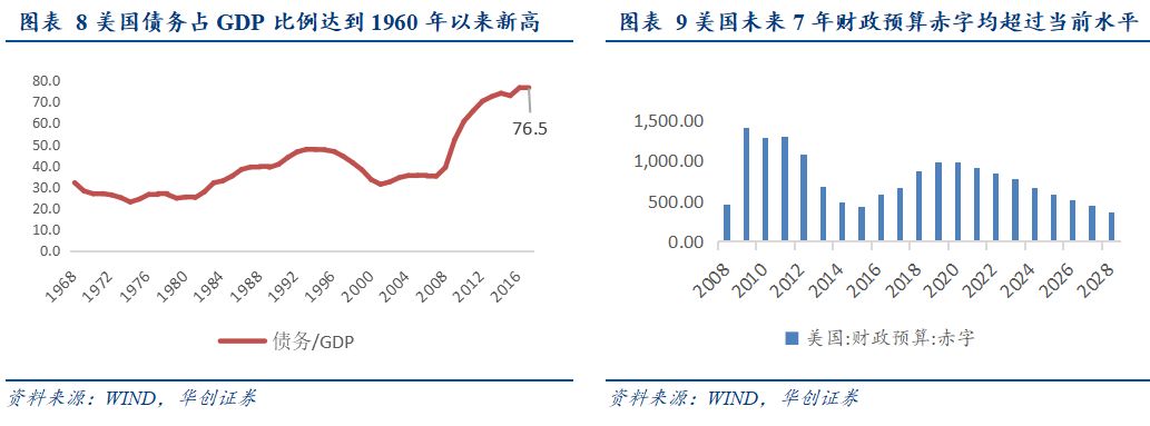 对美国经济的预期已经进入拐点期,从“2015年开始的加息上半程+逐步等待数据惊喜”到“现在进入加息下半程+等待拐点”,展望2019年美国经济的下行压力正在逐渐加大。1. 前期刺激政策效果逐渐消退,中期选举后额外扩张的财政政策面临阻力。一方面,中期选举后民主党控制众议院使得美国额外的财政刺激政策的执行面临较大阻力。详细观点请见《【华创宏观】美中期选举后的四种政策情景—请回答·2019系列二》另一方面,减税对经济的提振效果逐渐消退(短期来看,税改会提振总需求刺激经济增长,但长期或对私人投资产生挤出效应),企业投资支出增速将有所放缓(费城联储资本支出预期指标显示企业投资进入下行轨道);2.加息对实体经济的影响逐渐显现(美联储加息影响下居民信贷、房贷、车贷利率上升,利率敏感型消费如耐用品消费支出、汽车销售、住宅投资增速均有所下滑。居民个人利息支出占收入比重达到7年来高位,预计2018年美国政府利息支出占GDP的比重将超过50%)3.房地产市场进入下行周期(美国全国住宅建筑协会住房市场情绪指数、新房销售、新房开工数和房屋开工数均走弱)。