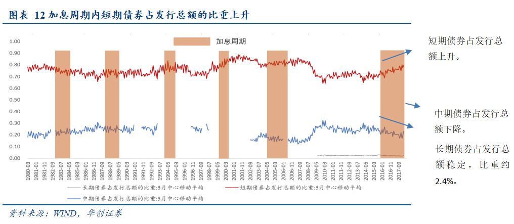 虽然供给增加,但主要以短期为主:从美国国债的发行量来看,在加息周期内以中短期债券发行为主,长期债券发行量占比不足3%,减税等财政赤字增加对长端美债冲击不大。一方面,从历史数据来看,加息期间短期债券占发行总额的比重呈上升趋势。加息导致利率的提高,从而增加了长期债券的发行成本,因此财政部以中短期债券发行为主。另一方面,根据美国国会预算办公室估计,2018年将增发约为1390亿美元的国债,由于长期债券占发行总额的比重约为2.4%,其增发的长期债券仅为192.96亿美元左右。