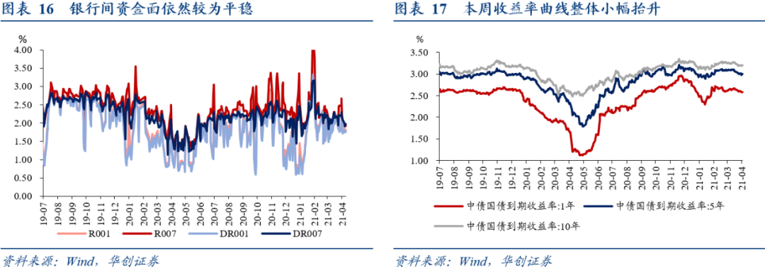 本周央行公开市场操作少量净回笼100亿,资金面整体边际宽松。本周公布通胀数据大超预期,3月PPI同比上行至4.4%。但债市反映相当平淡,除了有资金面相对宽松的因素外,金稳委会议上提出的“关注大宗商品价格走势”、“放水养鱼”等说法也使得债市减缓了对二季度流动性收紧的担忧。并且,下周即将公布金融数据和经济数据,预计社融增速将在高基数上快速下行,经济数据也难超预期甚至低于预期,使得债市当前仍在观望中。