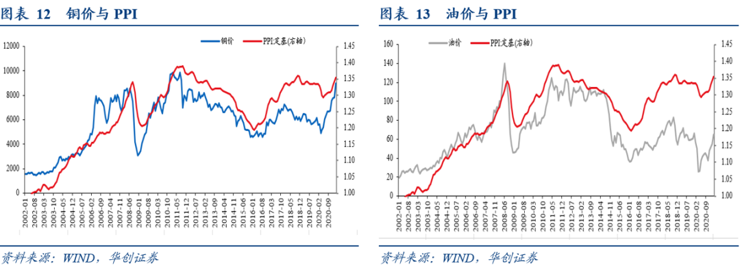 过去二十年的走势看,铜价率先见顶3-5个月后,油价与PPI指数基本才同步见顶。当下如铜仍有二次冲高风险,意味着,PPI指数上涨尚未结束——即PPI环比为正或仍可持续至少3-5个月。