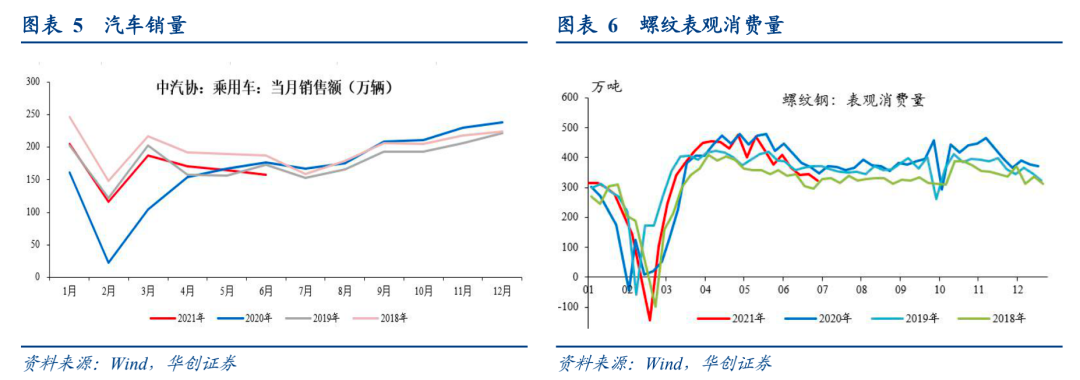 汽车方面,零售明显走弱。中汽协数据,6月乘用车销售量为156.9万辆,低于2018-2020年同期。