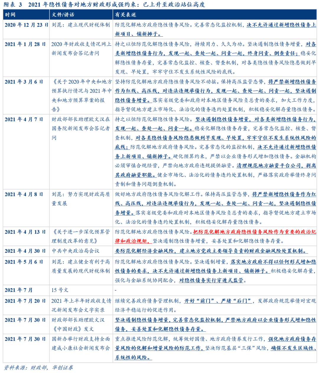 原因之四:疫情后财政纪律重塑,债务防风险重要性被拔高,“法定债务谨慎发、隐性债务稳妥化”已成为地方提升政治站位的现实需要。