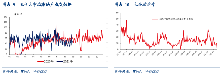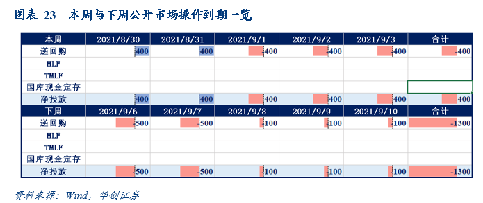 内需方面,汽车销售下滑,8月乘用车销量同比预计下降17.5%;土地成交量同比大减,8月前四周百城住宅类土地成交面积合计为602万平米,2020年同期是2403万平米。外需方面,中港协数据显示,8月21日-31日沿海八大枢纽港口集装箱吞吐量同比+4%,前值+2.7%,其中,外贸同比+4.9%,前值+5.3%。财政方面,9月新增专项债发行计划合计4338亿。
