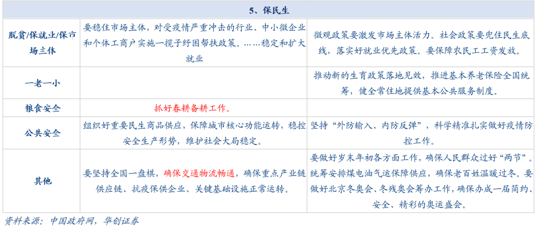 通告中提及“会议强调,疫情要防住、经济要稳住、发展要安全,这是党中央的明确要求”、“最大程度保护人民生命安全和身体健康,最大限度减少疫情对经济社会发展的影响”。依然可以清晰的看到疫情的排序依然是第一序列,是最优先的政治任务。环境确实变难了,变复杂了。通稿提到“新冠肺炎疫情和乌克兰危机导致风险挑战增多,我国经济发展环境的复杂性、严峻性、不确定性上升”。相比2021年年底的中央经济工作会议时的评估,当下疫情和俄乌冲突都造成了我们经济形势格外复杂,工作的确变难了、变复杂了,仅疫情冲击全年经济就预计有0.5%百分点左右(仍需看疫情发展随时更新估算)。但是不放弃目标,依然要努力。通稿提到“要坚定信心、攻坚克难,确保党中央大政方针落实到位”、“努力实现全年经济社会发展预期目标”。放弃目标论可以休矣。“要抓紧谋划增量政策工具,加大相机调控力度,把握好目标导向下政策的提前量和冗余度”。3、注意当下重点风险,包括什么?地产、资本市场、互联网平台。通稿专门一段提到“要有效管控重点风险,守住不发生系统性风险底线”。地产、资本市场、互联网平台都放在这段做了论述。也就是说,这三个是中央认为的当下需要管控和化解的重点风险领域——房地产数据继续下滑、民营房企债务风险不断、股市大幅下跌、互联网平台中概股集体下跌。4、如何推导稳增长的重心和抓手?投资是政策发力重心,投资中基建是核心抓手首先,由于疫情对消费和投资的冲击是不对等的,消费冲击显然大于投资,所以2022年的宏观经济面临一个不可能三角——5.5%左右的增长目标、疫情动态清零、经济结构均衡。前两个问题已经明确其中两个“角”要实现(疫情原则坚持、经济目标不放弃),那么今年经济结构必然要面临短暂的失衡加剧。因此我们就可以理解为何2020年下半年开始频繁提及的“经济结构再均衡”在今年是少有提及的。![]()