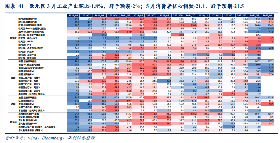 具体内容详见华创证券研究所5月25日发布的报告《【华创宏观】欧元区衰退风险有多大?——海外双周报第9期》。