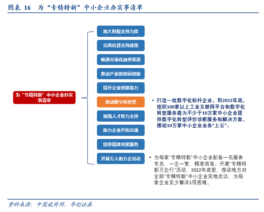 第四个与技改相关的专项行动是2021年11月国务院促进中小企业发展工作领导小组办公室印发的《为“专精特新”中小企业办实事清单》,要求各地政府真贯彻落实,并分别于2021年底、2022年底将落实情况报送国务院促进中小企业发展工作领导小组办公室。