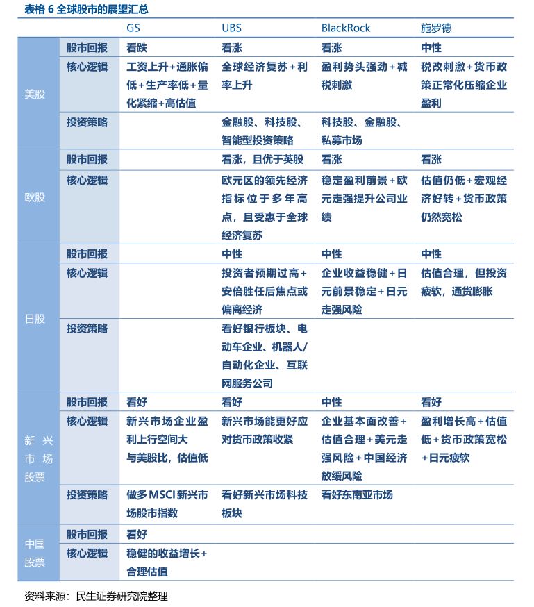 2018年各类资产观点汇总:高盛、瑞银、德银、摩根士丹利、贝莱德、施罗德