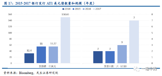 AT1债券作为银行补充资本金的工具之一,近两年来逐渐受到国内银行的青睐,2017年以来出现显著放量,年内共发行了7只AT1美元债,共计150.65亿美元,平均单笔金额21.52亿美元。
