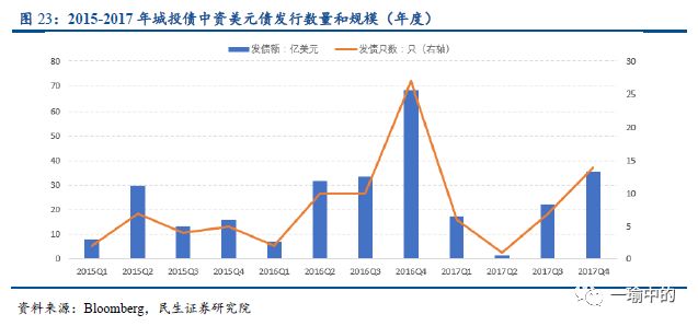 2017年,政府为把控债务风险,政策上全面收紧,于上半年致函多个地方政府,问责地方违规举债问题,缩紧城投公司融资渠道,城投美元债发行规模受到影响下降显著,于2017年二季度几乎绝迹。但下半年后城投美元债发行加速,或说明国家发改委政策转向。