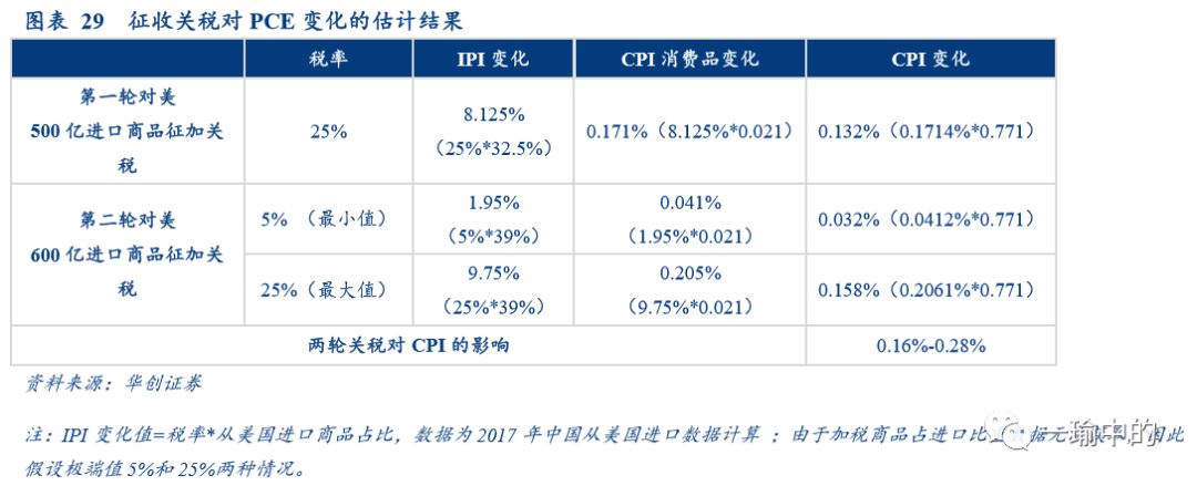 (四)结论:对美1100亿进口商品征收关税对CPI影响可控,影响在0.13%-0.29%之间
