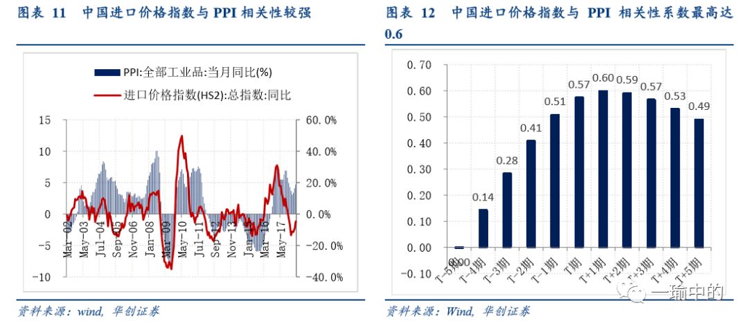 进口价格指数对PPI影响高于CPI:从历史走势来看,进口价格指数和PPI走势趋势一致。从相关性来看,PPI与进口价格指数相关性要高于CPI,在0.6左右。