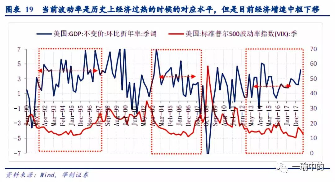 VIX的低波动水平和其应对应的经济质量相差甚远:波动率是历史上经济过热的时候的对应水平,但是经济本身质量却相差甚远,美国增速是掉台阶的。那就意味着逐渐在重复一个故事,大家对低增长的放心程度越来越高,但是每次出的问题都越来越大,然后风险定价脉冲的时候冲的更高。就是VIX的大周期波动性增加。似乎投资者总是忘记教训。