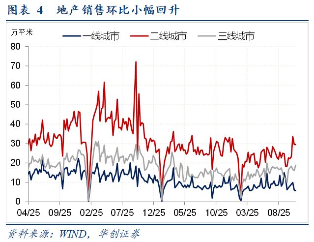 上周地产销售环比回升。上周30大中城市商品房日均成交面积53.97万平方米,整体同比上升17.58%,其中,一线城市同比下降23.67%,二、三线城市同比则分别上升23.2%和29.74%;整体环比小幅回升4.35%,一、二线城市环比分别下降5.12%和0.41%,三线城市环比则回升16.67%(图表4)。土地成交方面,截至11月11日,自10月以来100大中城市土地成交面积5451.6万平方米,较2017年同期的8367.9万平方米下降34.85%。