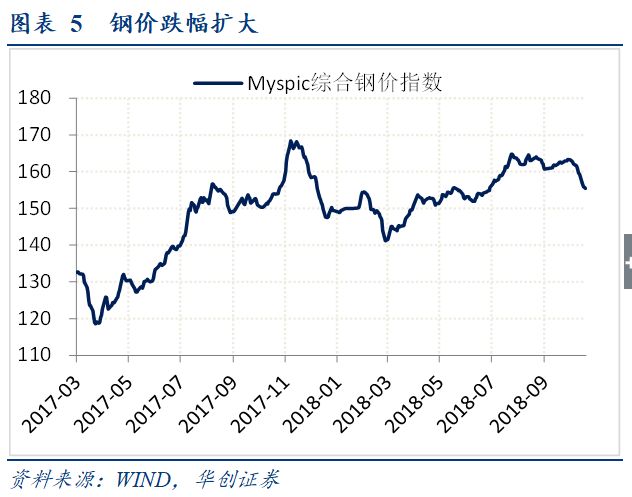 上周虽然正式进入采暖季,但高炉开工率环比出现连续两周回升,上周高炉开工率67.82%,环比回升0.21%,表明采暖季环保限产约束有所弱化;与此同时,汽车全钢胎开工率也连续两周回升,上周汽车全钢胎开工率76.1%,较前值回升0.17%;汽车半钢胎开工率则小幅下降1%至69.2%。上周经参头版发文称,在经历了近3年的集中化解钢铁煤炭行业过剩产能后,“十三五”期间压减煤炭产能5亿吨、粗钢产能1.5亿吨的上限目标有望提前两年超额完成,未来钢铁、煤炭供给侧结构性改革重在结构优化。环保限产、去产能等多项供给约束政策均将在19年进一步软化。上周钢价继续下跌且跌幅扩大,主要品种社会库存去化放缓,叠加采暖季限产偏弱,预计近期钢价震荡回落。