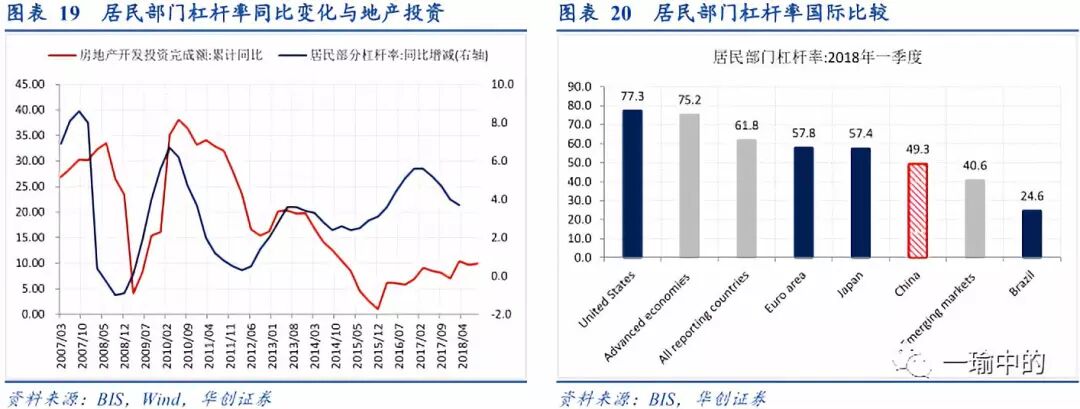 我国居民部门已不具备再度大幅快速加杠杆的空间。截至2018年一季度末,BIS统计的我国居民部门杠杆率49.3%,显著高于新兴经济体,距离日本、欧元区等发达经济体已较为接近。如果以过去两年5个百分点的年增长速度,我国居民部门杠杆率达到国际60%的警戒线只需要两年时间。整体上,居民部门杠杆扩张空间非常狭窄,再度放松地产政策无疑是杠杆在地产和消费之间的腾挪。