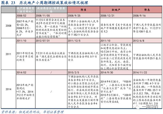 回顾2008、2011和2014三轮地产调控周期,降准、降息和地产调控松动三者无一缺席,但2011-2012年调控松动较为特殊,地产政策的松动在“满足居民合理自主性需求”的准则之下,以地方政府在公积金、贷款额度和税费优惠三个方面做适当放松为主。