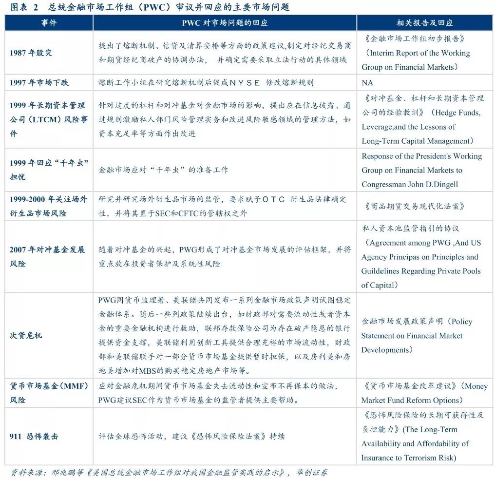 2.总统金融市场工作组理论上无权对股市采取直接干预(超越其职权范围,涉嫌操控市场), 但会议的召开往往是历次监管变化的信号。