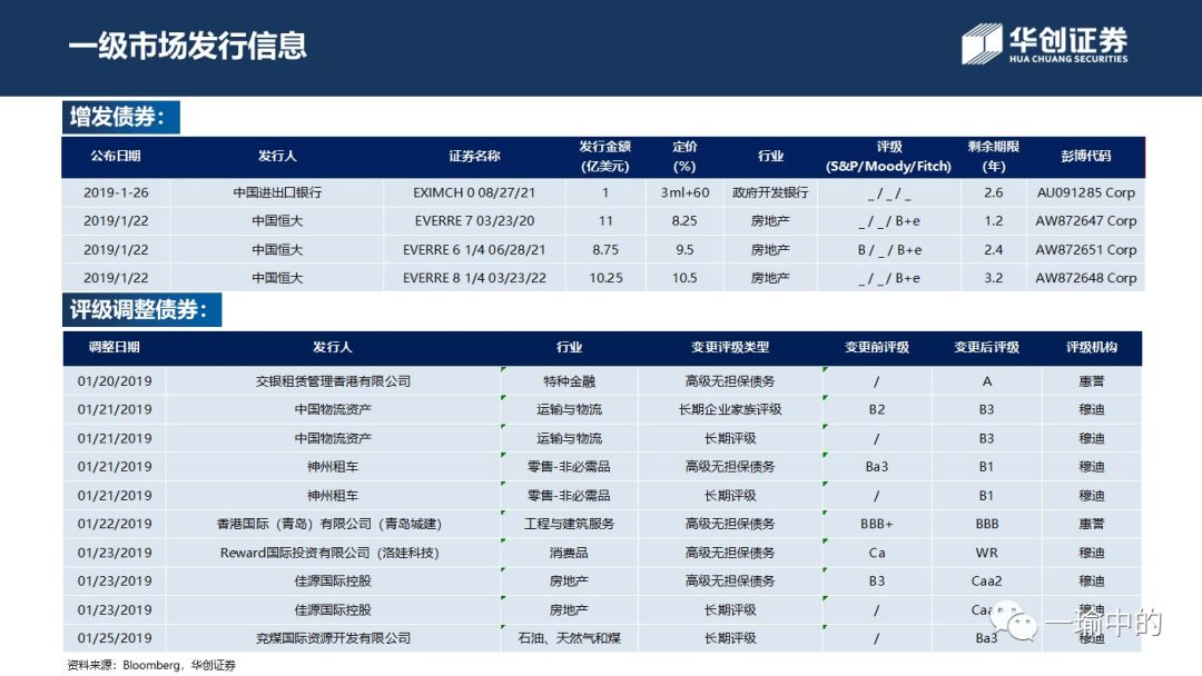 具体内容详见华创证券研究所1月26日发布的报告《【华创宏观】市场全面上涨,银行永续成亮点——中资美元债周报20190126》。