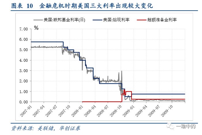 2007-2008年金融危机期间,美联储经历了1年左右的货币政策框架调整期。金融危机期间,美联储于2007年9月开始降息,而由于当时联邦基金市场流动性极度紧缺,导致联邦基金利率快速上升,不断在贴现率附近波动,原先的利率走廊框架被打破。而这一期间回顾借入准备金的变动也可观察到,银行向美联储贴现的规模急剧扩大。直到2008年11月美联储正式启动QE,联邦基金利率开始逐渐下降至贴现率之下。
