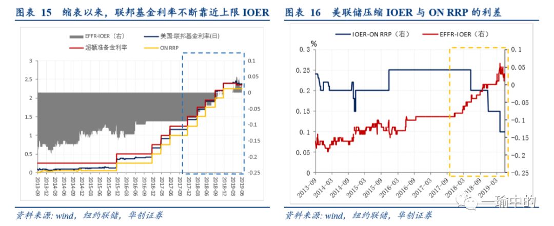 但EFFR-IOER利差转正,暗示美联储的货币政策走到“十字路口”。从目前央行对IOER的调控目的来看,希望通过下调IOER,压缩银行机构在央行与联邦基金市场套利的空间,从而鼓励银行更多地参与联邦基金市场交易,压低EFFR的中枢,使其仍能够在联邦基金目标利率区间波动,而不至于超出目标利率上限。但随着EFFR超过IOER,IOER的调控力逐渐减弱,地板系统或难以为继。未来美联储将如何调整其缩表进程、如何对IOER利率做出调整,似乎已经走到了关键的十字路口,我们在报告的最后两部分对美联储可能的政策选择做出推演。