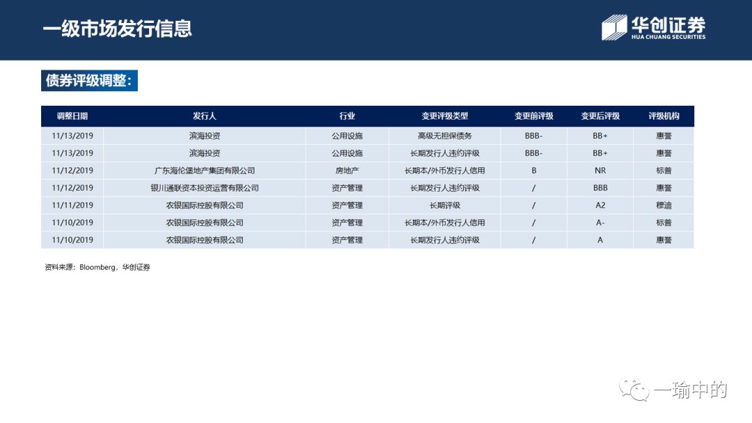 具体内容详见华创证券研究所11月17日发布的报告《【华创宏观】美债长端利率下行,投资级领涨美元债市场——中资美元债周报20191117》。