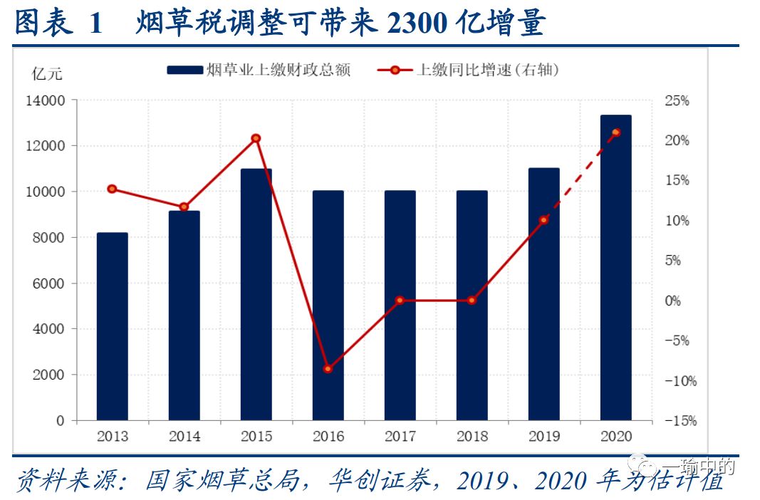加征烟草税能增收多少?以最近一次烟草税调整为例,2015 年5 月,财政部、国家税务总局将卷烟批发环节从价税税率由 5%提高至 11%,并按 0.005 元/支加征从量税,当年烟草业利润上缴即实现了 1839 亿多增(共实施8个月)。假设本轮烟草税调整力度不逊于 2015 年,在税基变化不大的前提下,月度边际财政收入增量约为230亿。假设本轮烟草税调整自3月执行,可创造约2300亿(230*10=2300亿)增量财政空间。