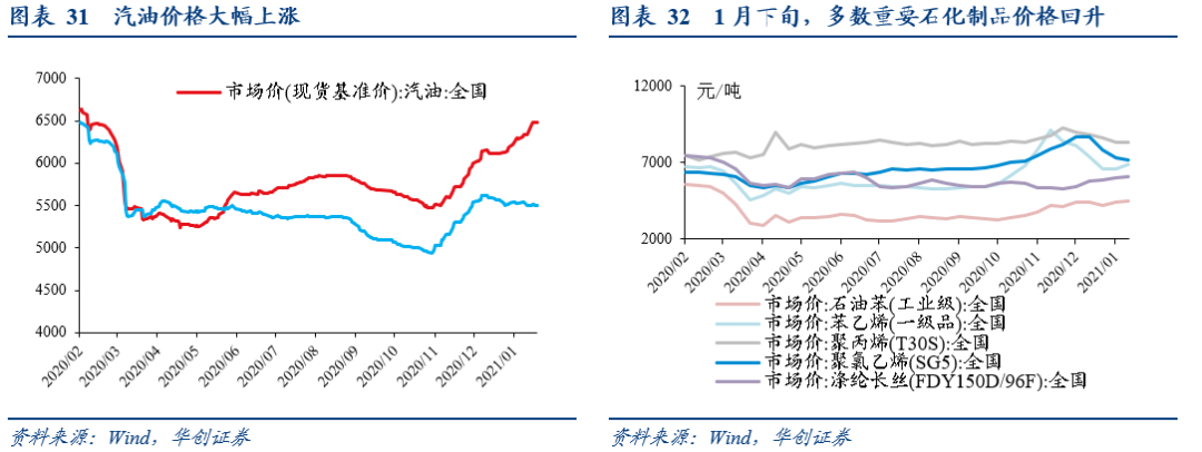 2)库存:被动补库中。1月PMI采购量、原材料库存波动不大,但产成品库存指数大幅回升,预计在被动补库。