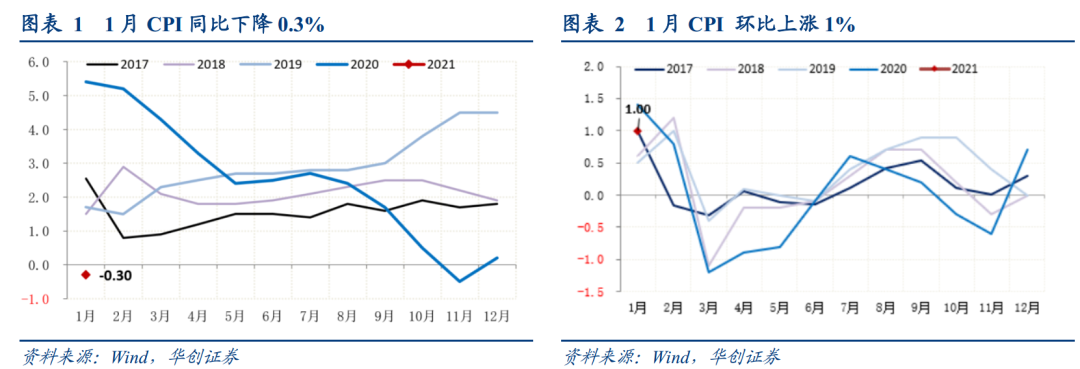 2021年1月,CPI同比-0.3%,前值0.2%;PPI同比0.3%,前值-0.4%。