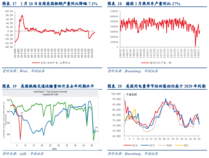 2月制造业新增就业人口2.1万人,时薪同比+2.9%,低于均值,周工时回落0.3小时至41.2小时。增量结构来看,2月制造业新增就业以耐用品行业为主(新增1.7万人),但其中汽车及零部件行业仅新增100人。存量结构看,截至2月制造业就业人数已恢复到疫情前就业人数的96%,但汽车及零部件行业仅恢复到91%,而从零售数据来看目前美国汽车及零部件销售额已超出疫情前水平,汽车消费需求显著强于劳动人口需求。这一格局或仍与美国目前疫情尚未完全可控有关,考虑到目前美国工业产值已恢复至疫情前水平的96%,未来有望传导至就业人口的进一步提升。
