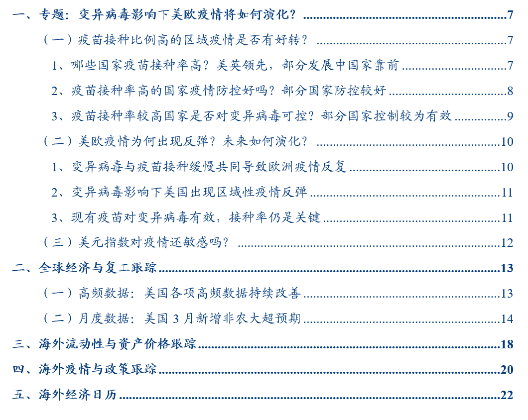 风险提示:疫苗对变异病毒有效率低于预期,各国防疫措施放松较早