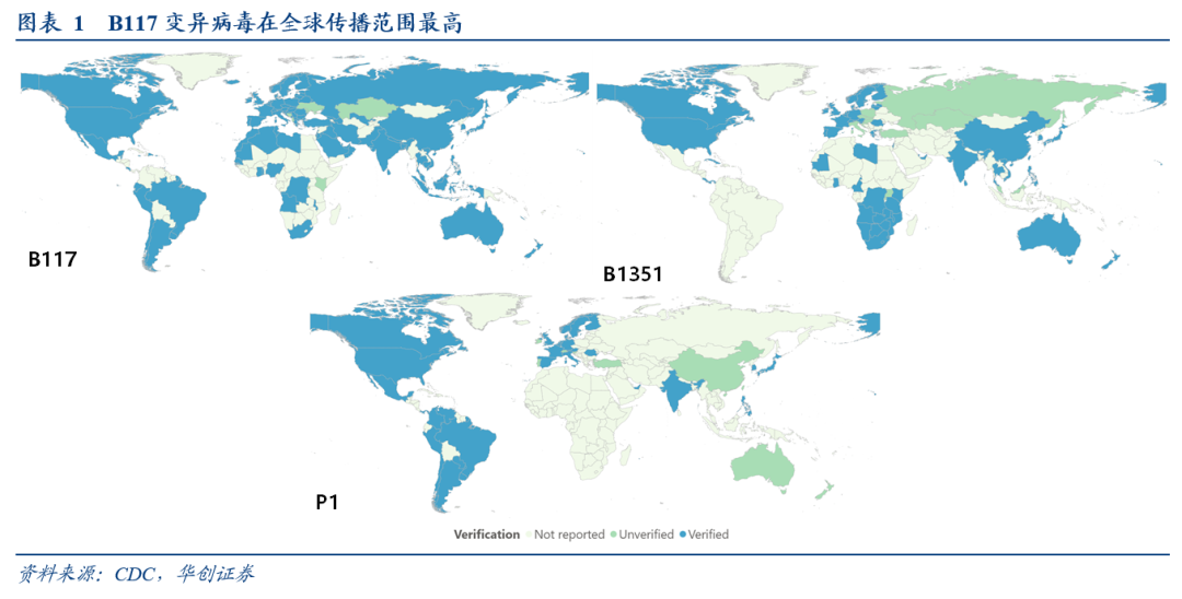 根据WHO的报告,B117变异病毒是造成欧洲目前疫情大规模爆发的主因之一。同时,德国RKI研究所所长表示B117变种现在占德国冠状病毒病例的40%以上;法国总理表示每天的新增病例中约50%为B117病毒感染引起的;而意大利卫生部长表示,受B117病毒影响意大利感染人群的年龄段出现年轻化,上述表态均反映了欧洲疫情新一轮爆发受变异病毒的影响较大。