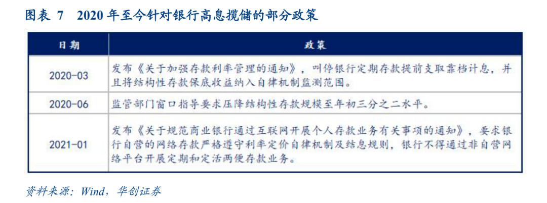 其次,有利于进一步破除存款利率刚性。由于银行端揽存压力较大,银行存款成本刚性问题始终较为突出。回顾2020年以来,央行持续通过监管手段针对银行高息揽储和负债刚性的压力。但各类存款产品层出不穷,结构性存款之外有大额存单,大额存单之外有创新型定期储蓄产品。此次存款利率定价机制的转换,沿承了同一政策目标,但在治理手段上更接近问题源头。