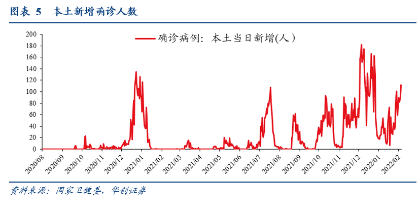 汽车消费:截止至20日,2月零售累计同比增长-5%,环比1月同期增长47%;批发累计同比增长26%,环比1月同期增长-33%。2月第三周进入开学季购车高潮期,相对节前火爆期的零售回升到7成水平。但受疫情散发、重大赛事防控等影响,2月车市整体回暖仍较慢。