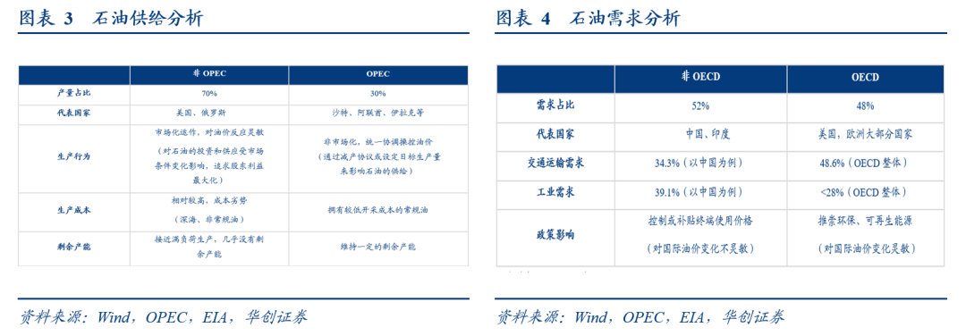 1)目前油价大概率已回归高位均衡区间。从既往历史看,石油在高低位均衡点相互转换的情况并不多见,大约有五次。全球新冠疫情爆发以来,受经济复苏和政策大宽松刺激、主要产油国或主动或被动大幅削减原油产量、地缘冲突等因素影响,在经历疫情初期大幅下跌后,目前油价大概率已从2014-2020年的低价均衡区间运行至高价均衡区间。