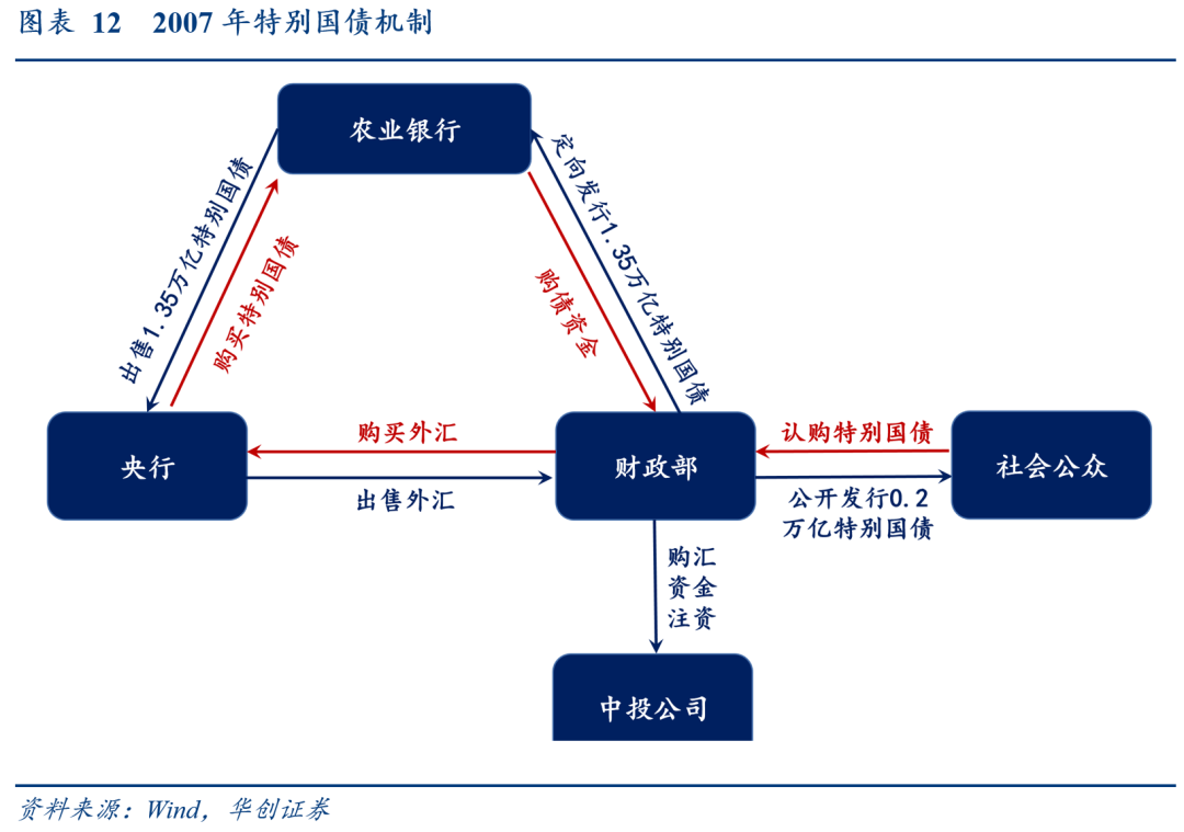 特别国债历史上出现过三次新发,分别为:1998年为缓解金融风险、补充四大行资本金新发2700亿特别国债(图11);2007年为缓解流动性过剩新发1.55万亿特别国债(图12)。2020年为筹集财政资金、统筹推进疫情防控和经济社会发展,发行1万亿抗疫特别国债——不同于1998、2007年特别国债100%对应形成资产,抗疫特别国债中至少4200亿可用于弥补预算缺口(抗疫相关支出),剩余5800亿主要投向基建项目(图13)。![]()