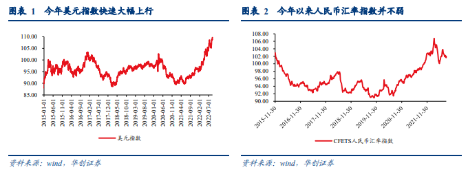 横向比:和其余币种相比,自年初美元走强以来人民币贬值幅度相对不大,对主要非美货币升值,今年以来人民币汇率指数并不弱。