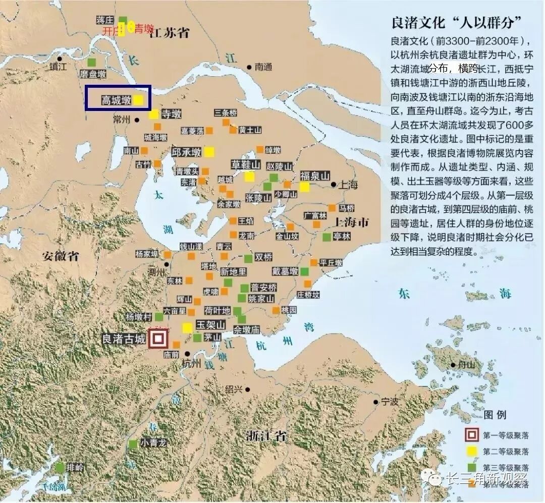 【结合我2019年的考察,修改过的良渚遗址分布图,增加了长江以北被遗忘忽略的东台开庄、海安青墩两处遗址】