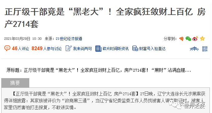 区区大连市一厅级领导,距离宰相(总理)级别差太多了,如此一PK,徐长元搜括能力不是弱了,还是强了,所以他才能贪没2714套房子!