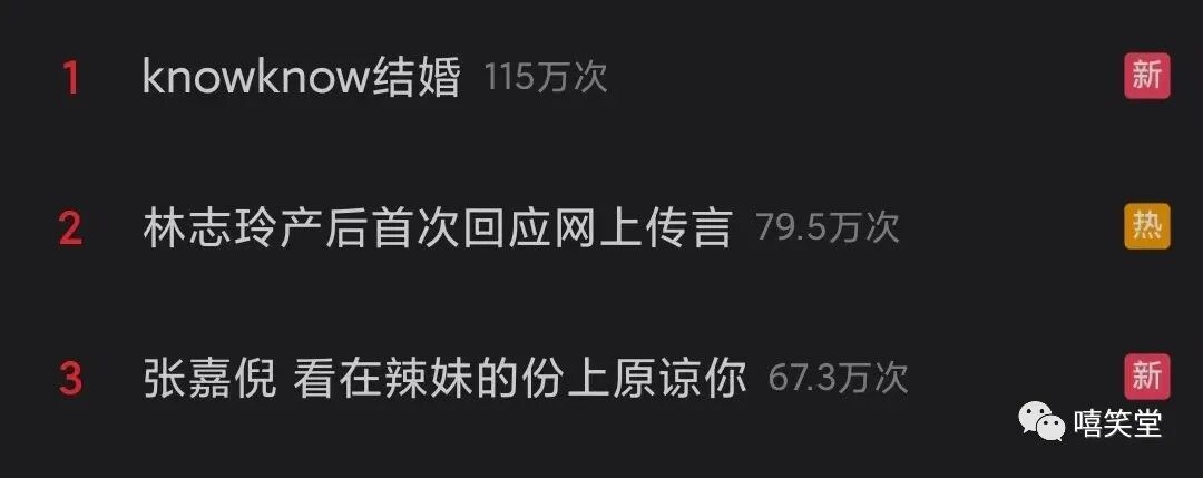 Knowknow的婚礼也迅速登上了网络热搜第一。