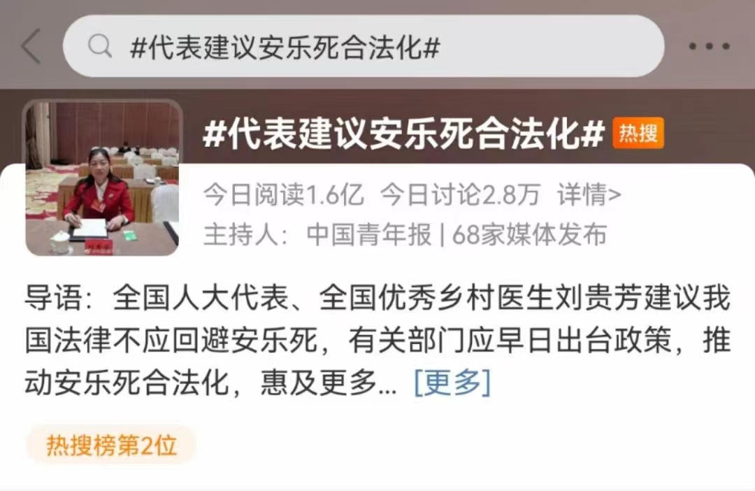 此次刘贵芳建议安乐死合法化,也在网上引发热烈讨论。